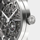 - Precision made visible: The skeletonized dial unveils the complex aesthetics of the automatic movement.