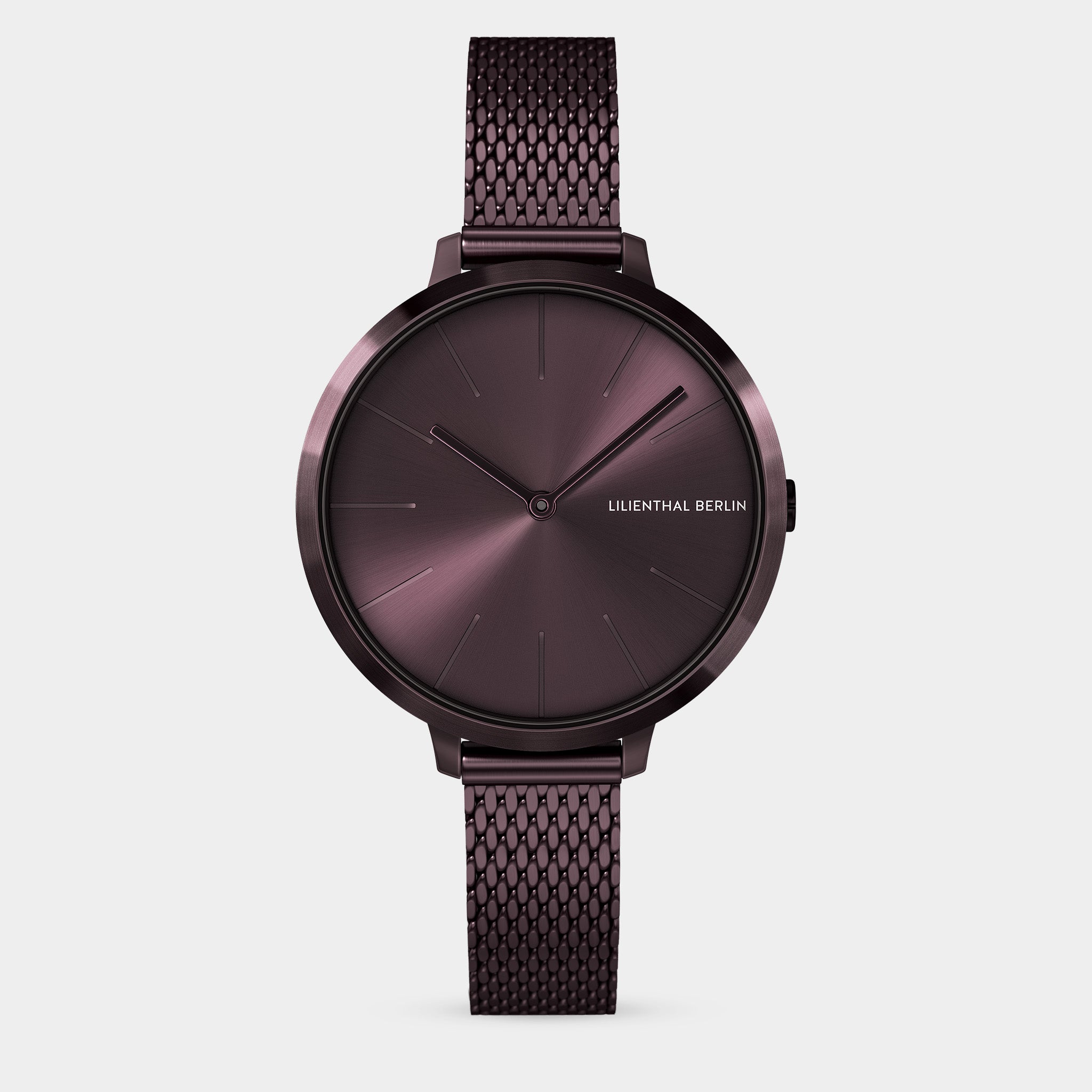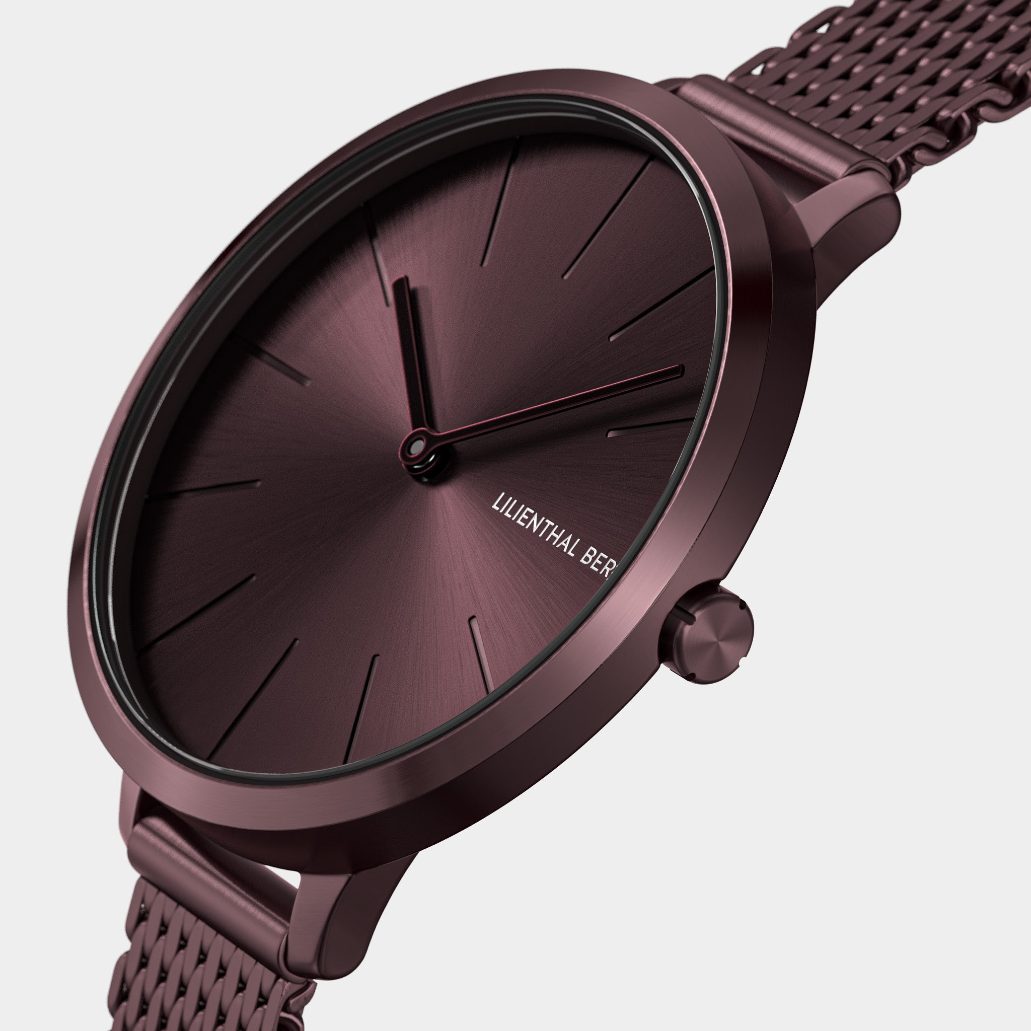 - Elegance in Monochrome: The matte-brushed case and sunray dial are wrapped in a deep burgundy hue, creating a seamless, tone-on-tone aesthetic.